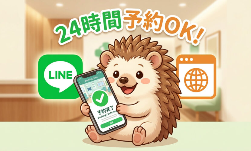 院長〜!予約したいんだけど、いつも営業時間中に電話できなくて困ってたんだよね……。夜中に「あ、明日予約しなきゃ」って思い出しても、もう電話できないし。